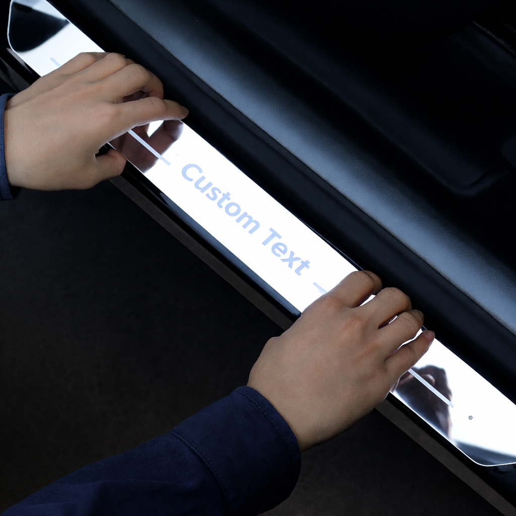 Schützen Sie Ihre Türen und beeindrucken Sie jeden Passagier mit maßgeschneiderten LED-Einstiegsleisten – personalisiert mit Ihrem Namen oder Logo, gebaut um zu glänzen und zu halten.